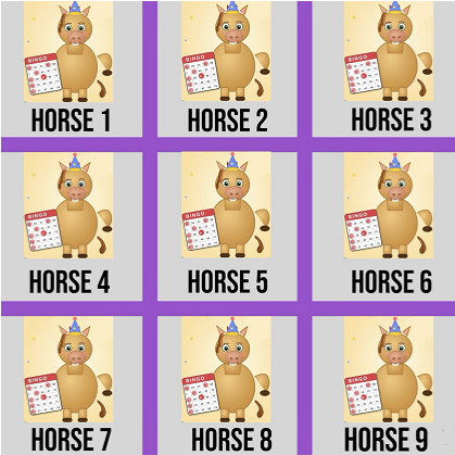 To sign up you simply pick out 9 different horses from the current lineup and place them in the order you wish that will correspond to the horse squares listed below in numerical order. Then submit it to Brian and make yourself a Bingo Card accordingly.