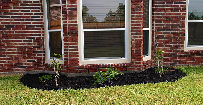 | Flowerbed around the bedroom with Sweet Olive Bushes and a Golden Dewdrop in the center. |