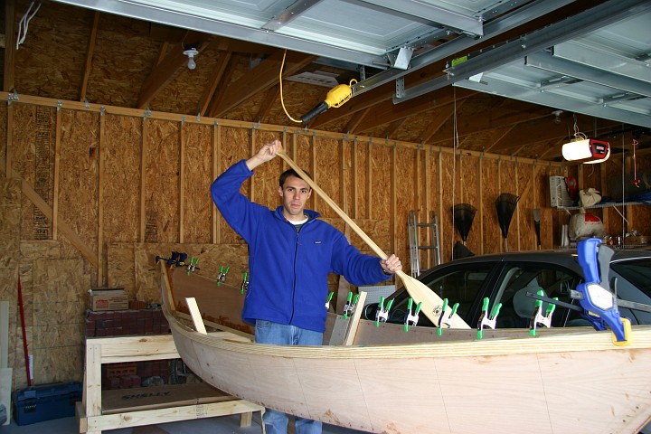 | Trying the canoe out before the bottom was installed | |